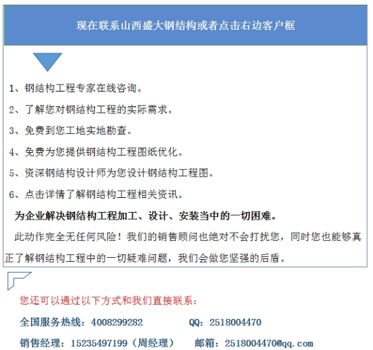 山西盛大鋼結構工程有限公司是一家太原鋼結構加工廠家,歷經二十多年風霜雨雪,成長為今天具有鋼結構工程專業承包貳級資質的大型鋼結構生產企業。在互聯網高速發展的今天,公司在2015年介入了互聯網營銷。在太原鋼結構傳統營銷已經逐漸失去優勢的時候,“互聯網+”逐漸的走進了企業的視野,成為新時代最熱的關鍵詞。